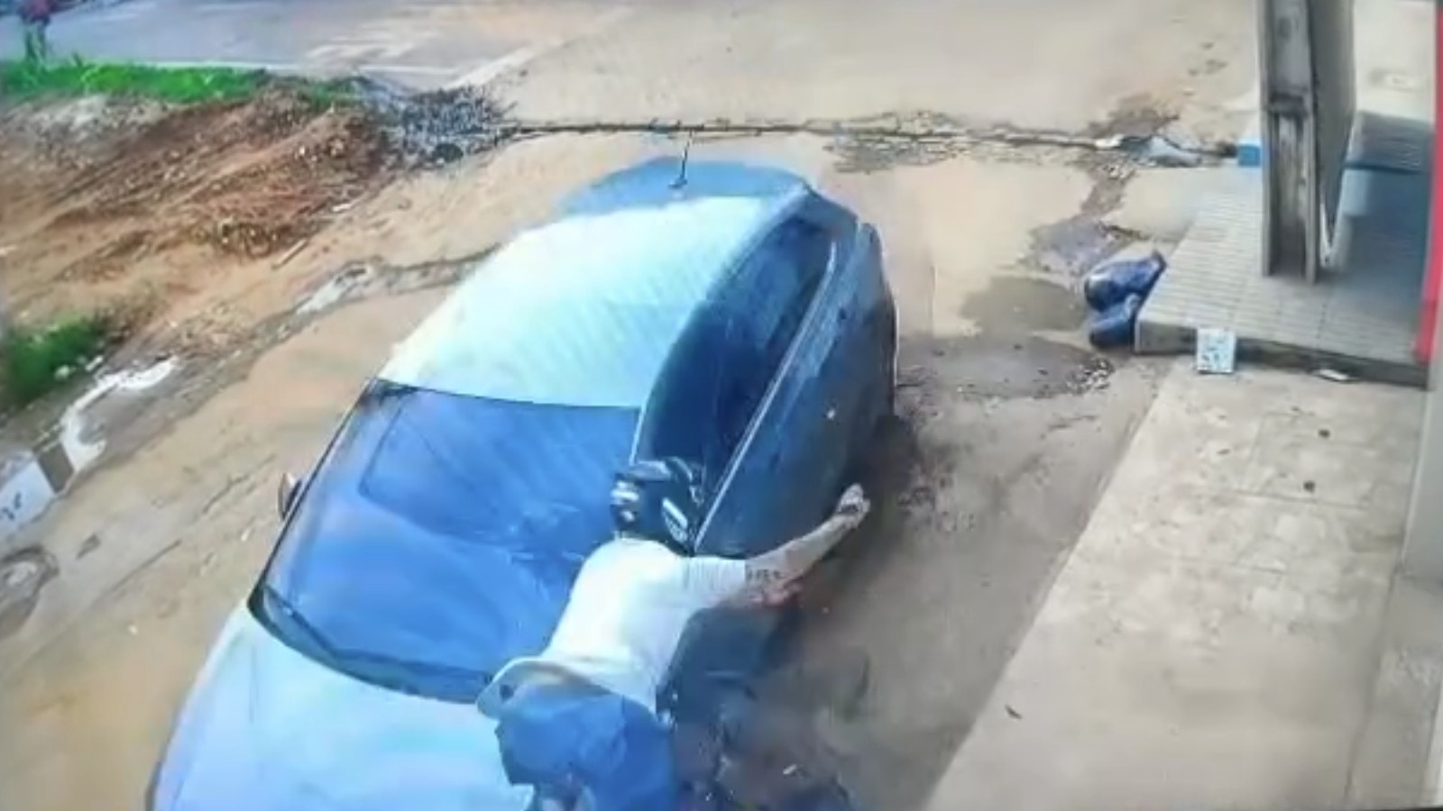 Imagens do local mostraram o carro, um Peugeot branco, danificado e parado no sentido contrário da via, com o airbag acionado.
